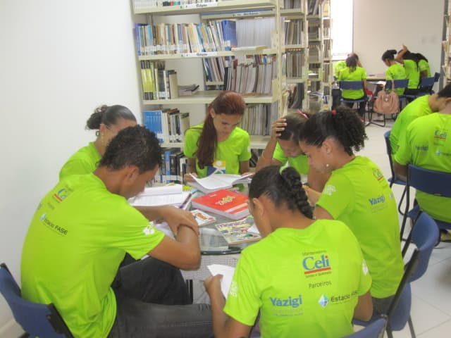 Alunos em atividade na sala de leitura